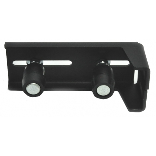 Конструкция кронштейна для откатных ворот обладает хорошей жесткостью и прочностью на разгибы. В корпусе имеются длинные горизонтальные пазы, обеспечивающие широкий ход полимерным роликам, что позволяет удерживать створку любой возможно допустимой толщины.